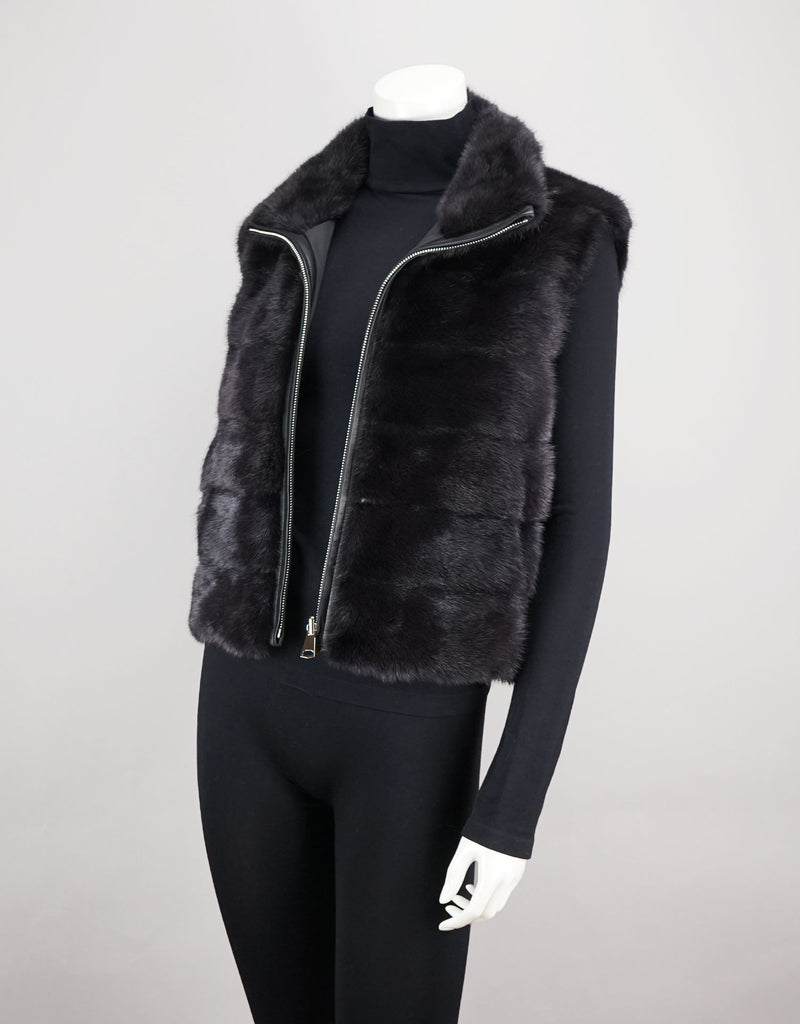 Reversible Mink Vest - Graphite